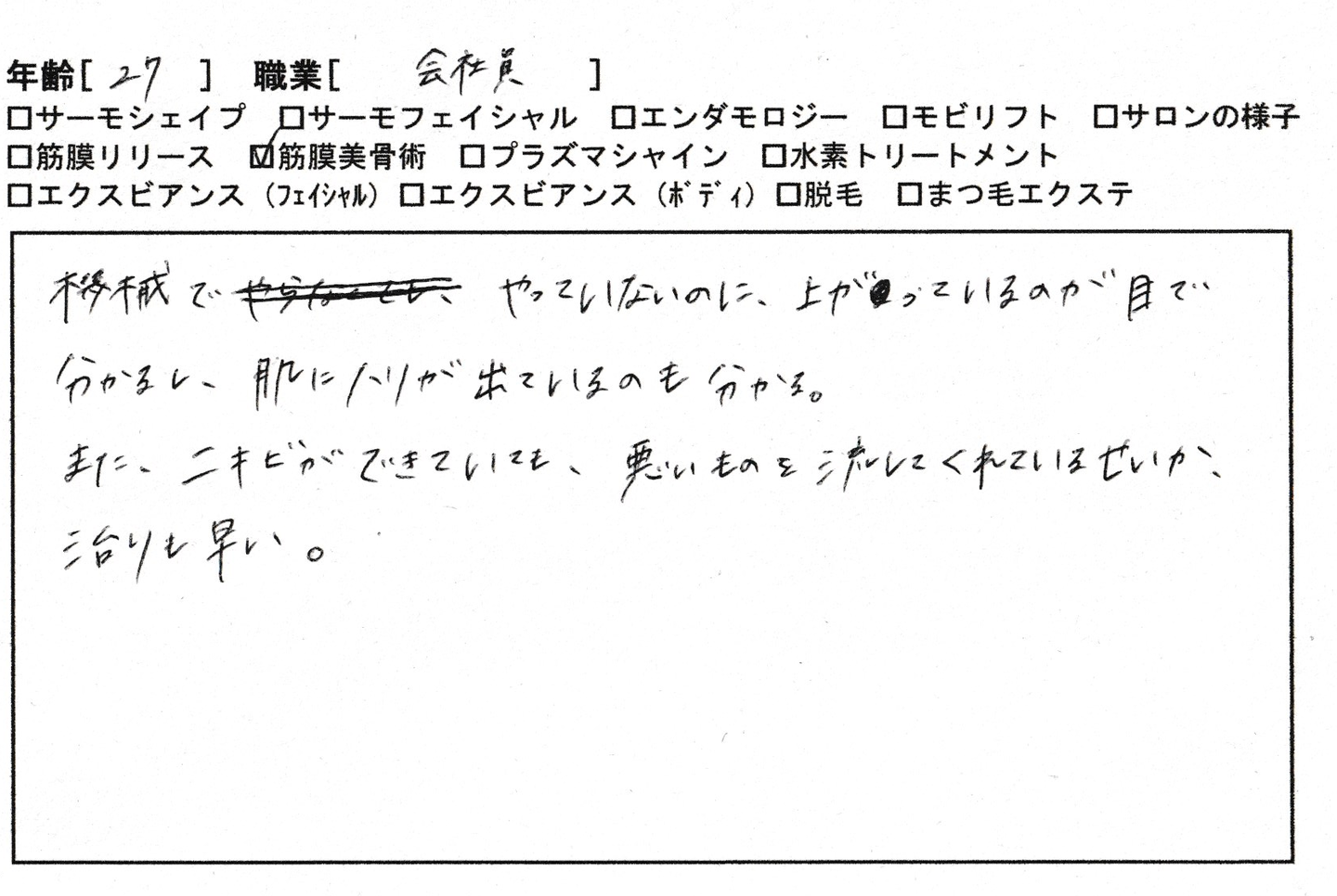 機械でやっていないのに、上がっているのが目でわかるし、肌にハリが出ているのも分かる。