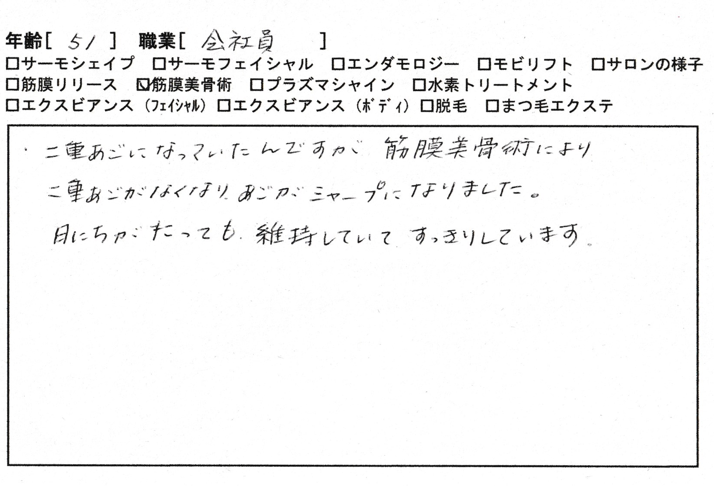 二重アゴになっていたんですが筋膜美骨術により二重アゴが無くなりアゴがシャープになりました。