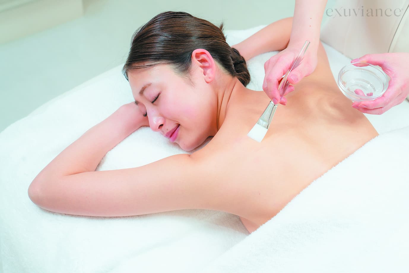 背中のメニューでは古い角質や過剰皮脂をケア。新陳代謝を促し、肌のターンオーバーを助けます。