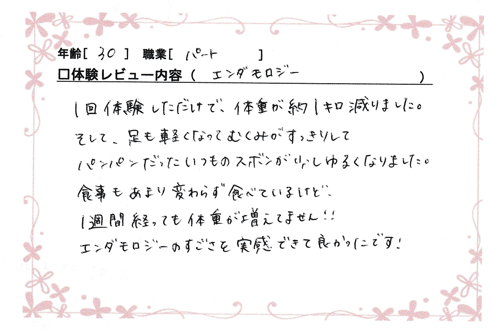 「1回で体重1kg減!!」/30歳 パート