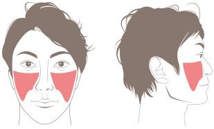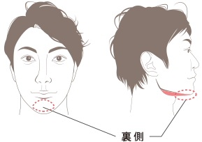 目の下から上唇のラインまでになり、横は鼻からもみあげのラインになります。