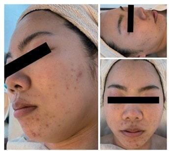 中学生の頃からずっとニキビで悩んでいました。高い化粧水や美容液を何種類も試してきましたが、全く良くなりませんでした。そんな時、ザ・ムーンさんでエクスビアンスを勧めて頂きました。一度、背中の日焼け後を消すために、背中のピーリングを受けた事があり、背中のニキビも悩んでいたのですがピーリングを受けている間、すごく綺麗になった経験があったため、期待してフェイシャルも受けてみる事にしました。始めのうちは顔全体がごわつきだして、大丈夫かな?と思いましたが、みるみる内にきれいになっていき、ニキビが出来にくくなりました。もっときれいになっていくのが楽しみです!!