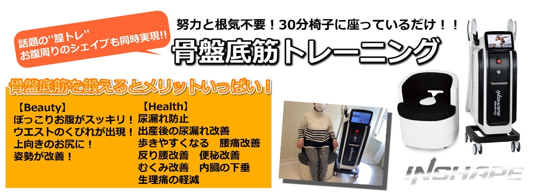 | インシェイプ骨盤底筋トレーニング(1部位30分) | ビジター価格¥16,500(初回価格¥8,800) |