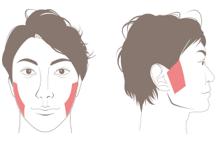 もみあげラインからアゴにかけての部位になります。