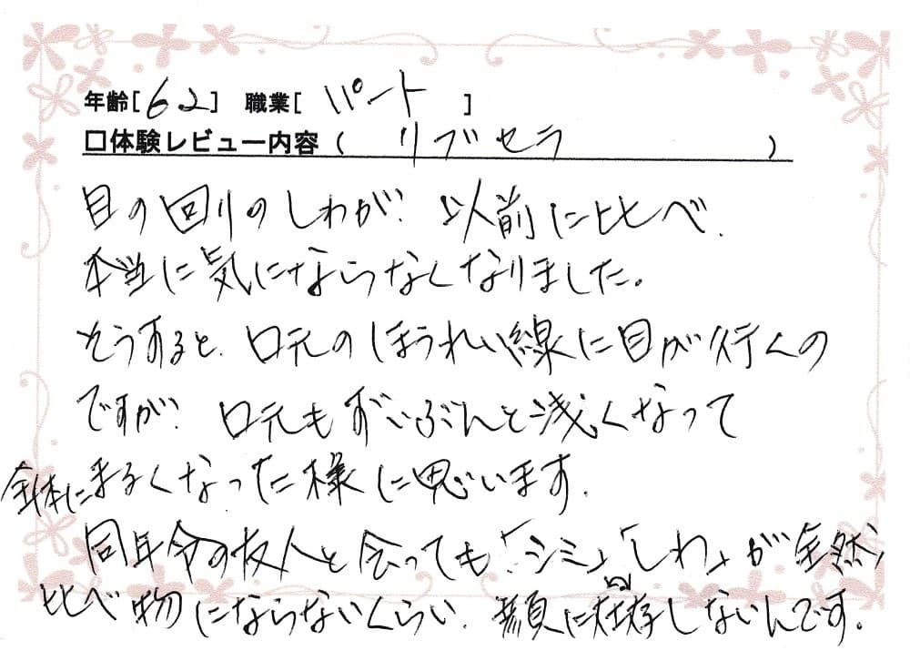 目の回りのしわが、以前に比べ本当に気にならなくなりました。
