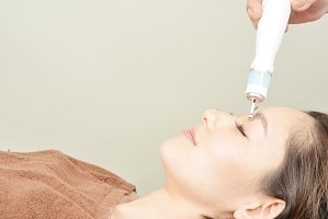 プラズマイオンを拘束で皮膚にあてる事で古い角質などを取り除きます。