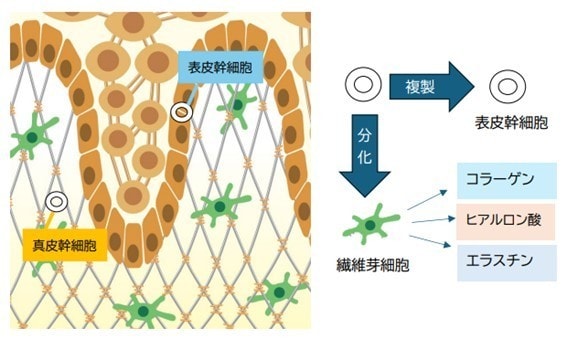 プラズマフェイシャルは表皮幹細胞や真皮幹細胞に働きかけて、細胞の複製や分化を促します。それにより新たな表皮細胞や線維芽細胞がつくられます。